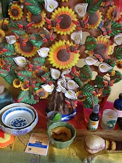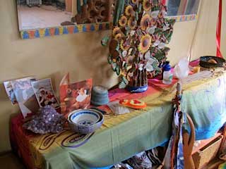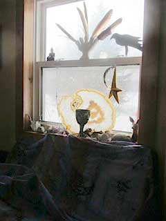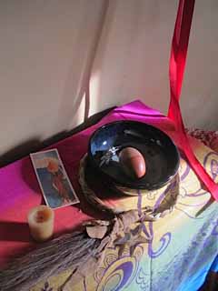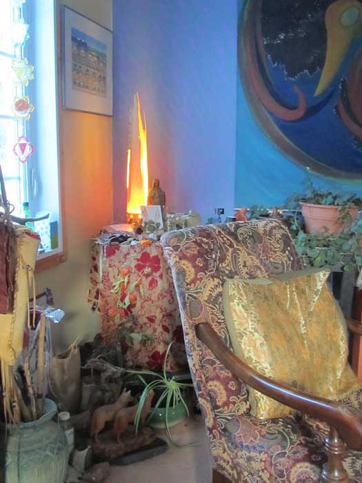 This nurturing environment comes about through the intentions of many individuals who have joined in shamanic sessions, celebration, and ceremony as well as my own practice in solitude. Dyads, triads and mandala circles, have gathered in the space, and the building of altars, like the building of many layers of devotion in a community, focuses our intent.